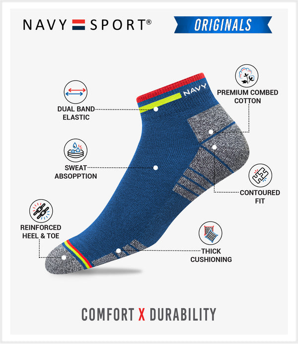 Made from best of class combed cotton and top grade elastic for superior grip and comfort, each pair of NAVYSPORT socks is second-to-none.