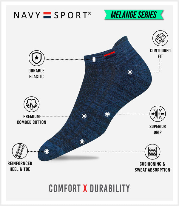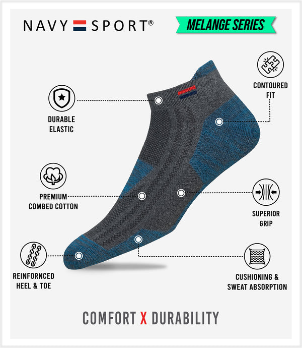 NAVYSPORT Melange Sports & Casual Cushion Cotton Ankle Socks, Pack of 1