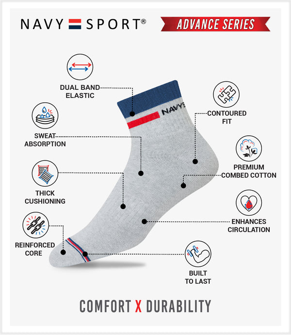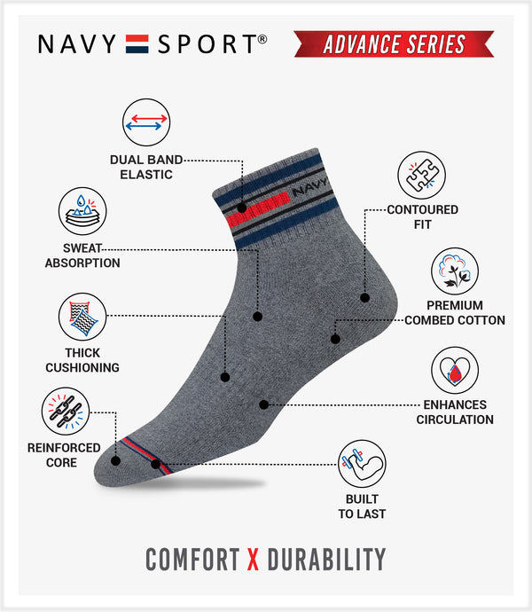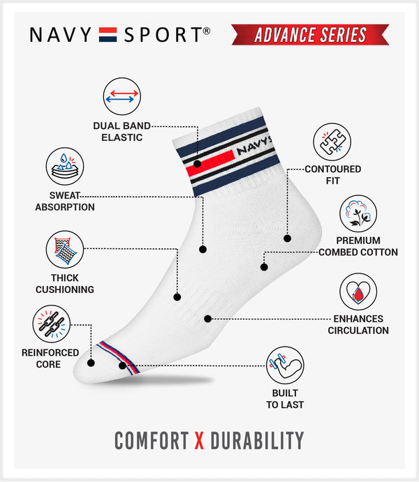Made from best of class combed cotton and top grade elastic for superior grip and comfort, each pair of NAVYSPORT socks is second-to-none.