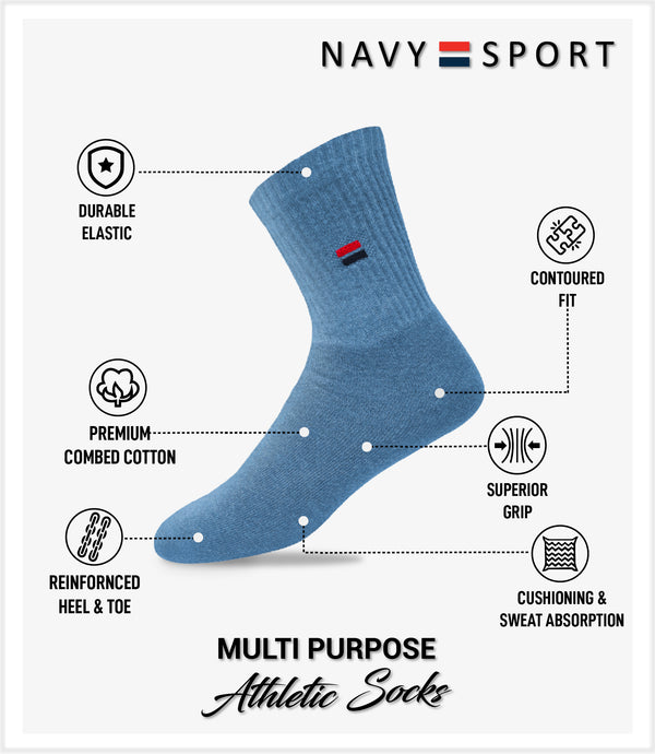 NAVYSPORT Men's Calf Length Cotton Socks, Pack of 3