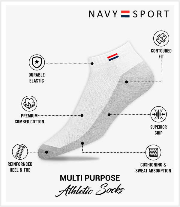 NAVYSPORT Men's Cotton Solid Ankle Socks, Pack of 3
