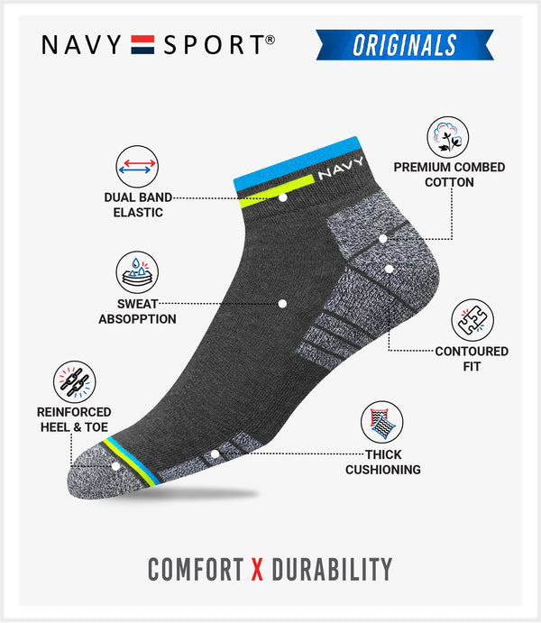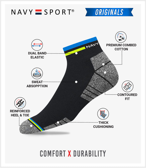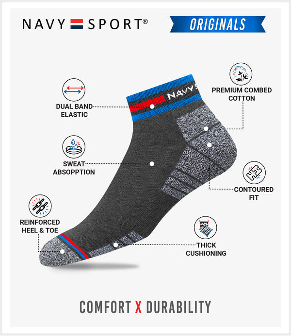 Made from best of class combed cotton and top grade elastic for superior grip and comfort, each pair of NAVYSPORT socks is second-to-none.