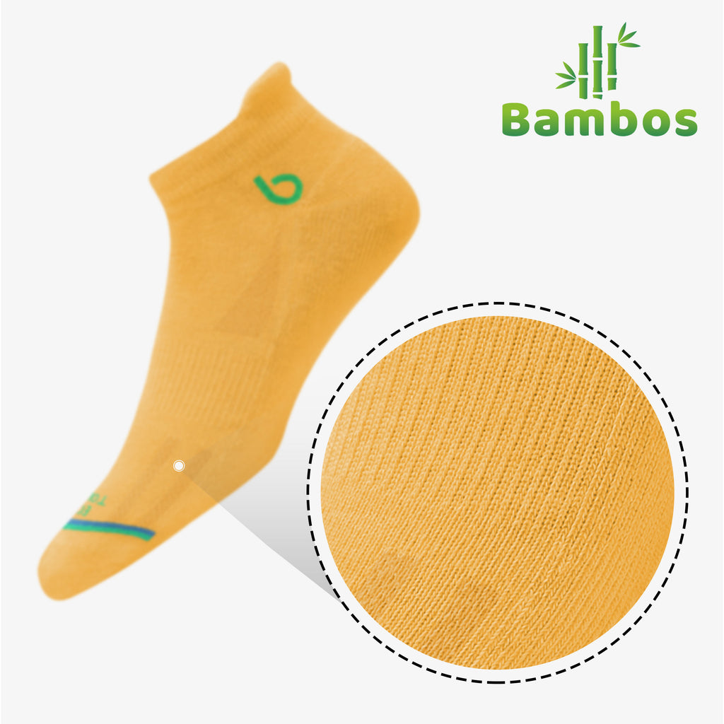 ULTRA SOFT ECO TOUCH FABRIC : Knitted from a proprietary blend of natural fibres and elastic yarn to give you maximum comfort during intense athletic activity as well as all day casual use. Crafted from one of the softest natural fibres available on the planet, BAMBOS socks are not only super soft but are also skin friendly and offer cushy comfort to your feet all day long.