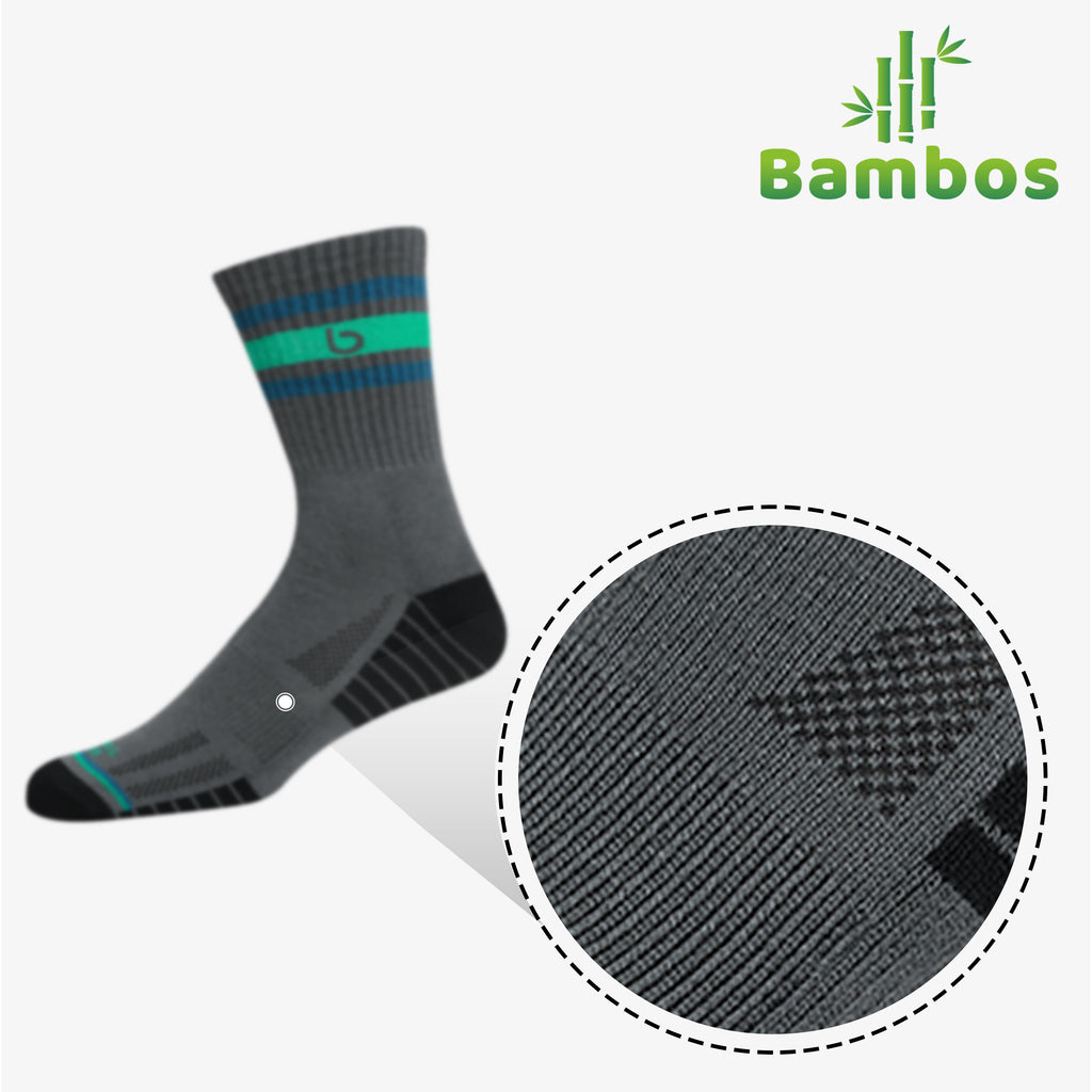 ULTRA SOFT ECO TOUCH FABRIC : Knitted from a proprietary blend of natural fibres and elastic yarn to give you maximum comfort during intense athletic activity as well as all day casual use. Crafted from one of the softest natural fibres available on the planet, BAMBOS socks are not only super soft but are also skin friendly and offer cushy comfort to your feet all day long.