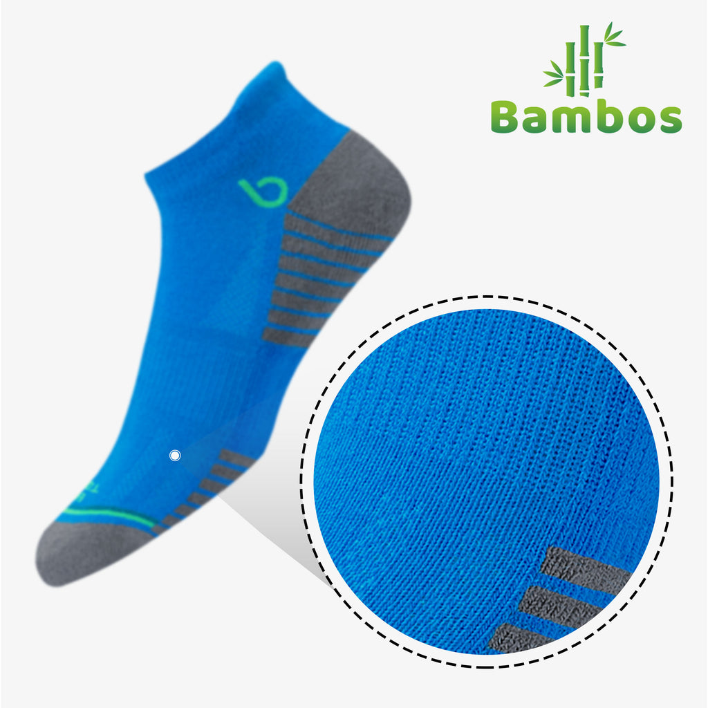 ULTRA SOFT ECO TOUCH FABRIC : Knitted from a proprietary blend of natural fibres and elastic yarn to give you maximum comfort during intense athletic activity as well as all day casual use. Crafted from one of the softest natural fibres available on the planet, BAMBOS socks are not only super soft but are also skin friendly and offer cushy comfort to your feet all day long.