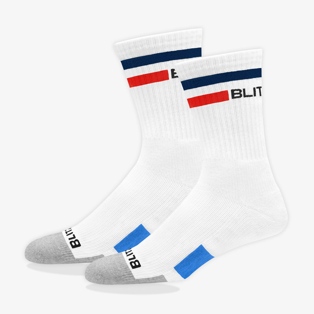 Blitzsox is designed and tested to deliver high performance and maximum comfort during intense athletic activity. Made especially to support and withstand intense athletic activity for Tennis, Cricket and Badminton players incorporating proprietary design technology such as the Hex-Comb footbed that offers best-of-class cushioning and DRI-WIK mesh design that keeps moisture away from your feet using materials of the highest grade available in the market today to withstand multiple washes and retain the shape and sheen much longer, these socks delivers the best of both the worlds - hi performance and durability making them the best pair of socks an athlete can get.