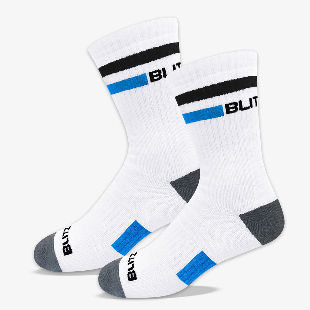 Blitzsox is designed and tested to deliver high performance and maximum comfort during intense athletic activity. Made especially to support and withstand intense athletic activity for Tennis, Cricket and Badminton players incorporating proprietary design technology such as the Hex-Comb footbed that offers best-of-class cushioning and DRI-WIK mesh design that keeps moisture away from your feet using materials of the highest grade available in the market today to withstand multiple washes and retain the shape and sheen much longer, these socks delivers the best of both the worlds - hi performance and durability making them the best pair of socks an athlete can get.