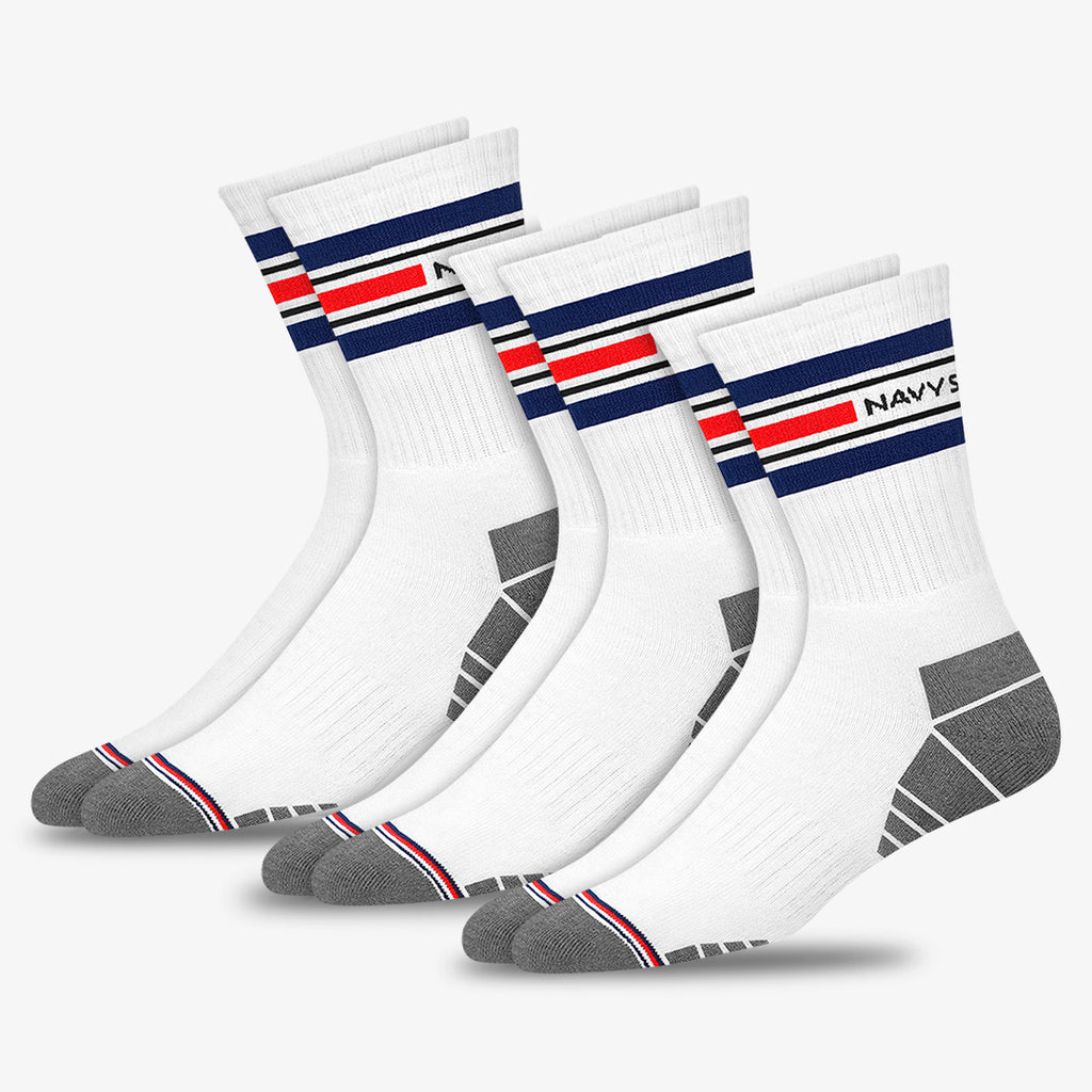NAVYSPORT striped premium designer socks incorporate cutting edge design techniques to deliver maximum comfort to your feet. Crafted from the highest grade combed cotton sourced from the best of class spinning mills in India, each pair of socks has . A durable elastane produced from premium grade rubber is used to ensure a firm grip and withstand everyday wear and tear.
