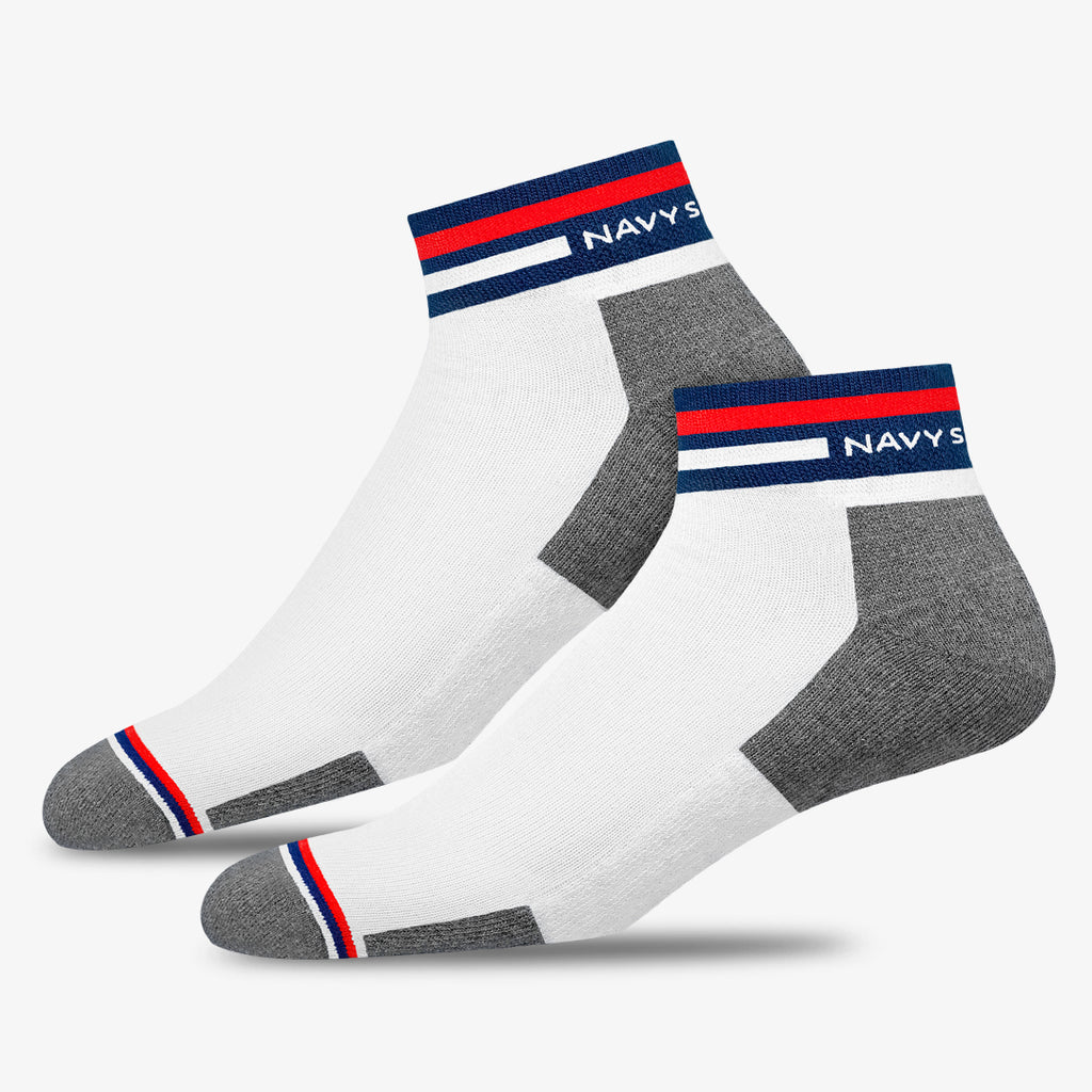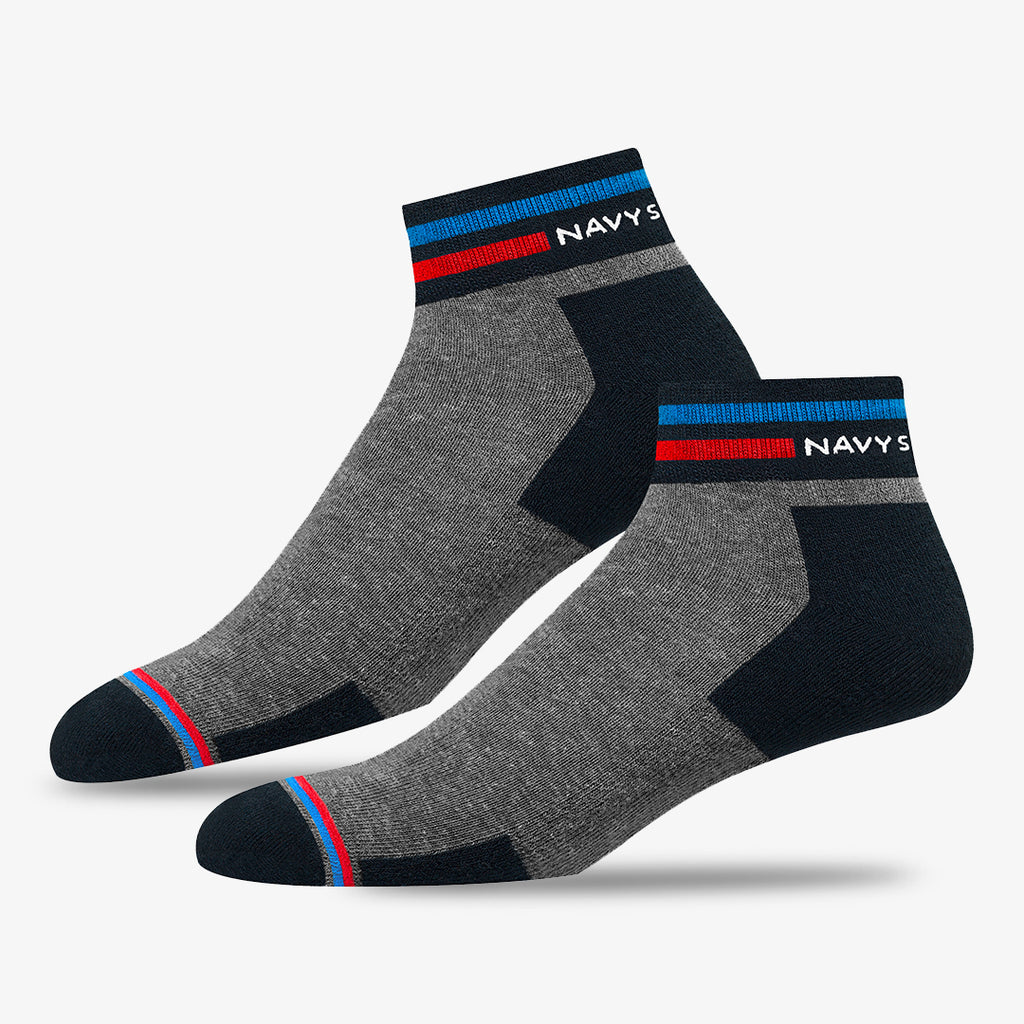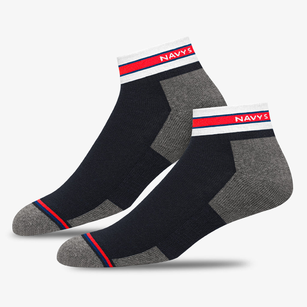 NAVYSPORT Originals premium ankle socks incorporate cutting edge design techniques to deliver maximum comfort to your feet. Crafted from the highest grade combed cotton sourced from the best of class spinning mills in India, each pair of socks has . A durable elastane produced from premium grade rubber is used to ensure a firm grip and withstand everyday wear and tear. -