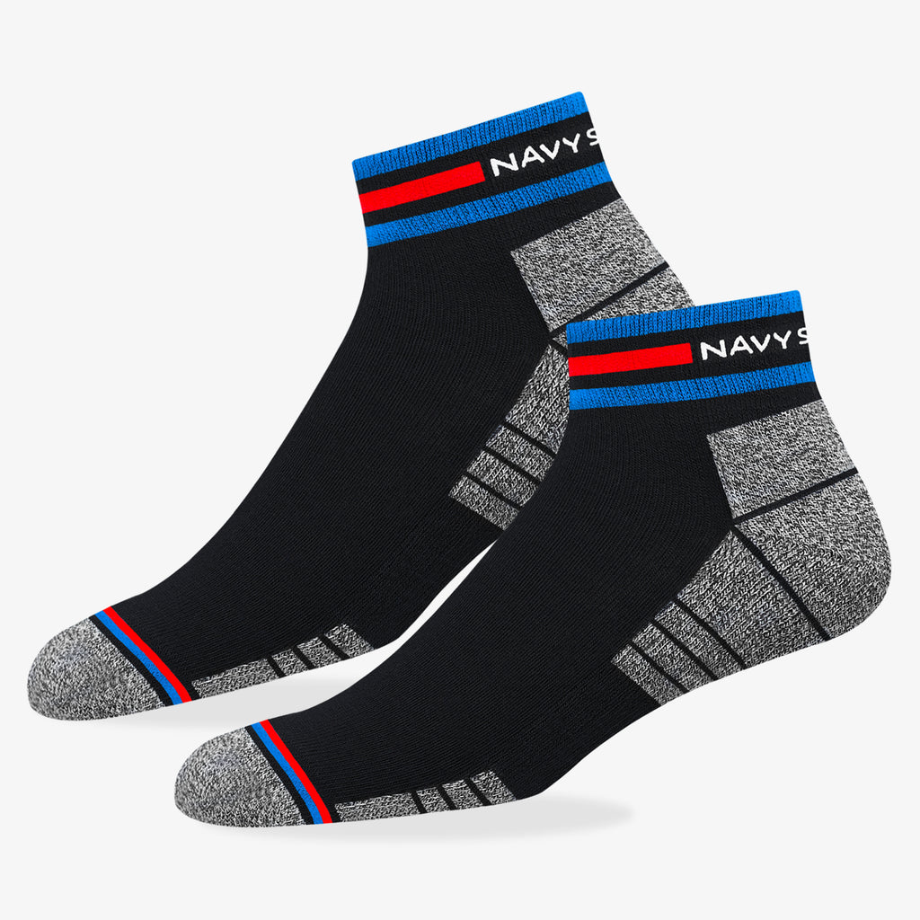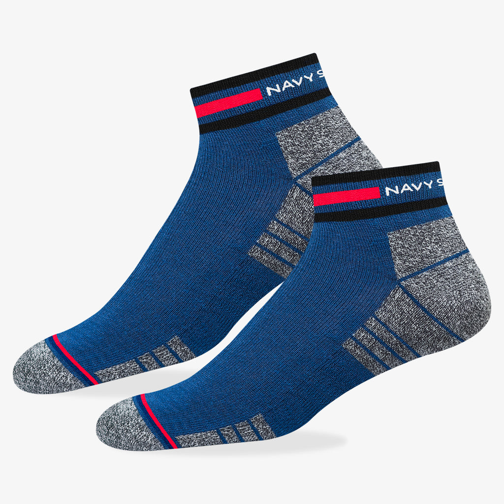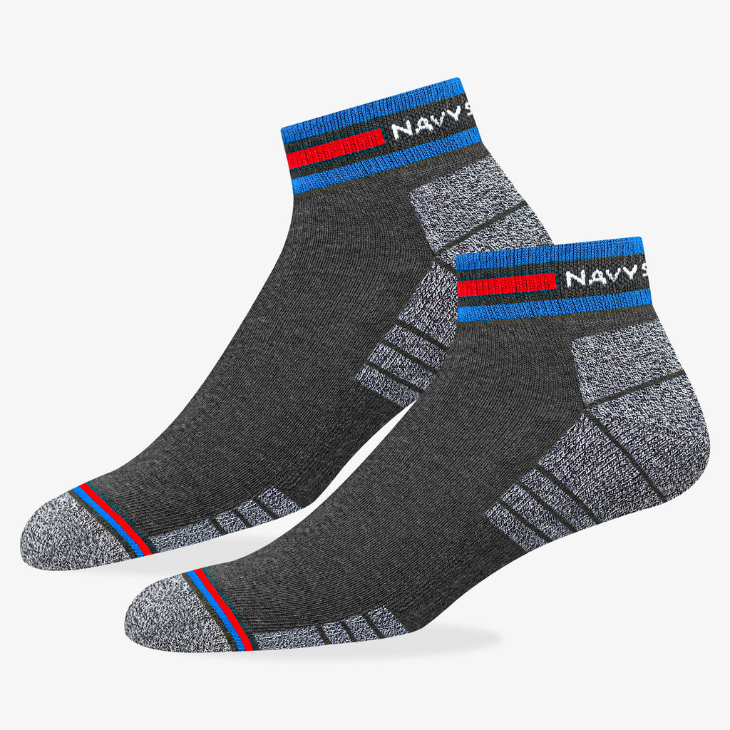 NAVYSPORT Originals premium ankle socks incorporate cutting edge design techniques to deliver maximum comfort to your feet. Crafted from the highest grade combed cotton sourced from the best of class spinning mills in India, each pair of socks has . A durable elastane produced from premium grade rubber is used to ensure a firm grip and withstand everyday wear and tear. -