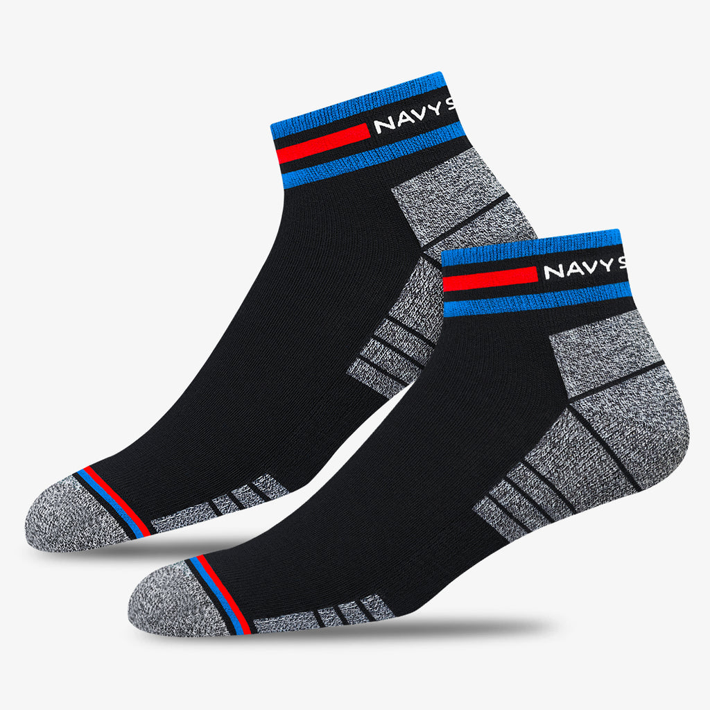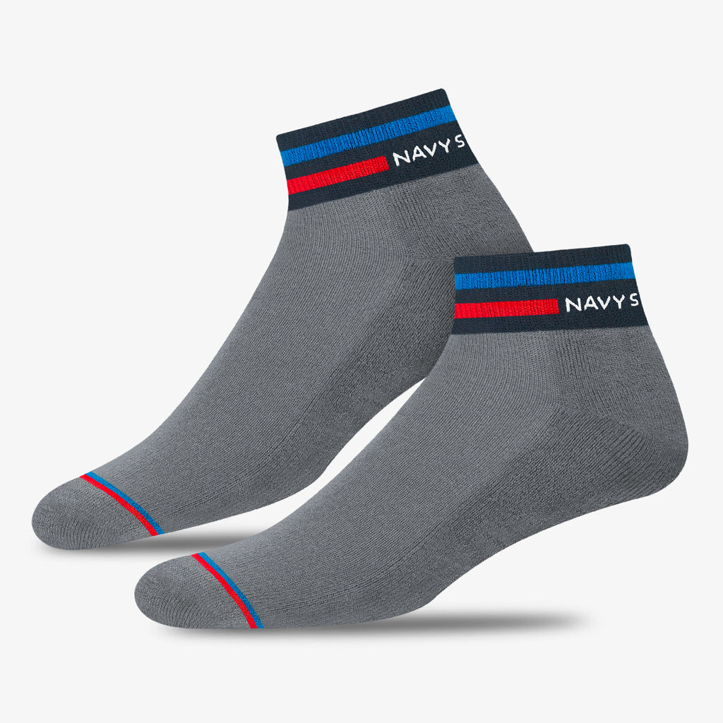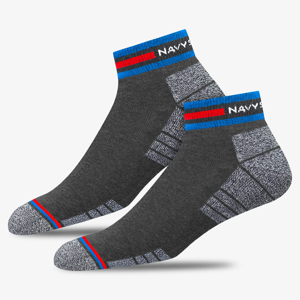NAVYSPORT Originals premium ankle socks incorporate cutting edge design techniques to deliver maximum comfort to your feet. Crafted from the highest grade combed cotton sourced from the best of class spinning mills in India, each pair of socks has . A durable elastane produced from premium grade rubber is used to ensure a firm grip and withstand everyday wear and tear.