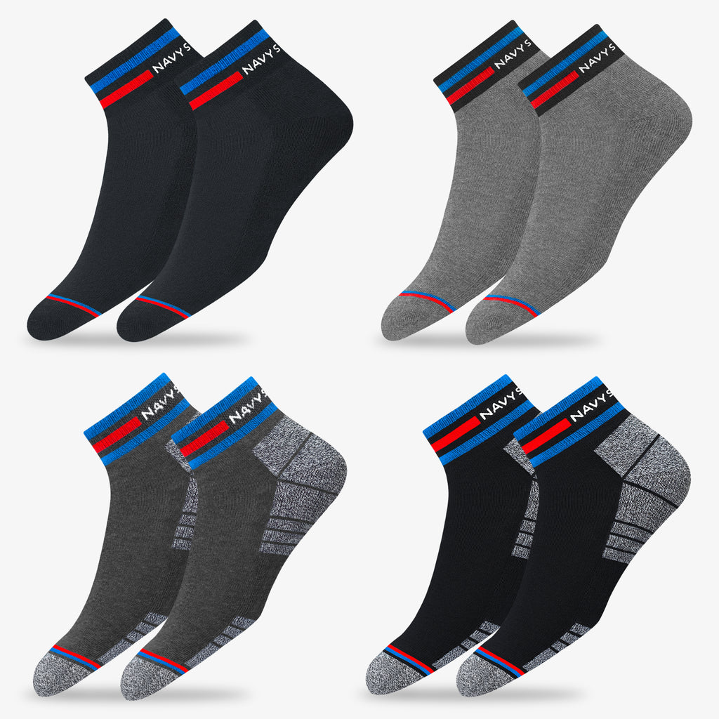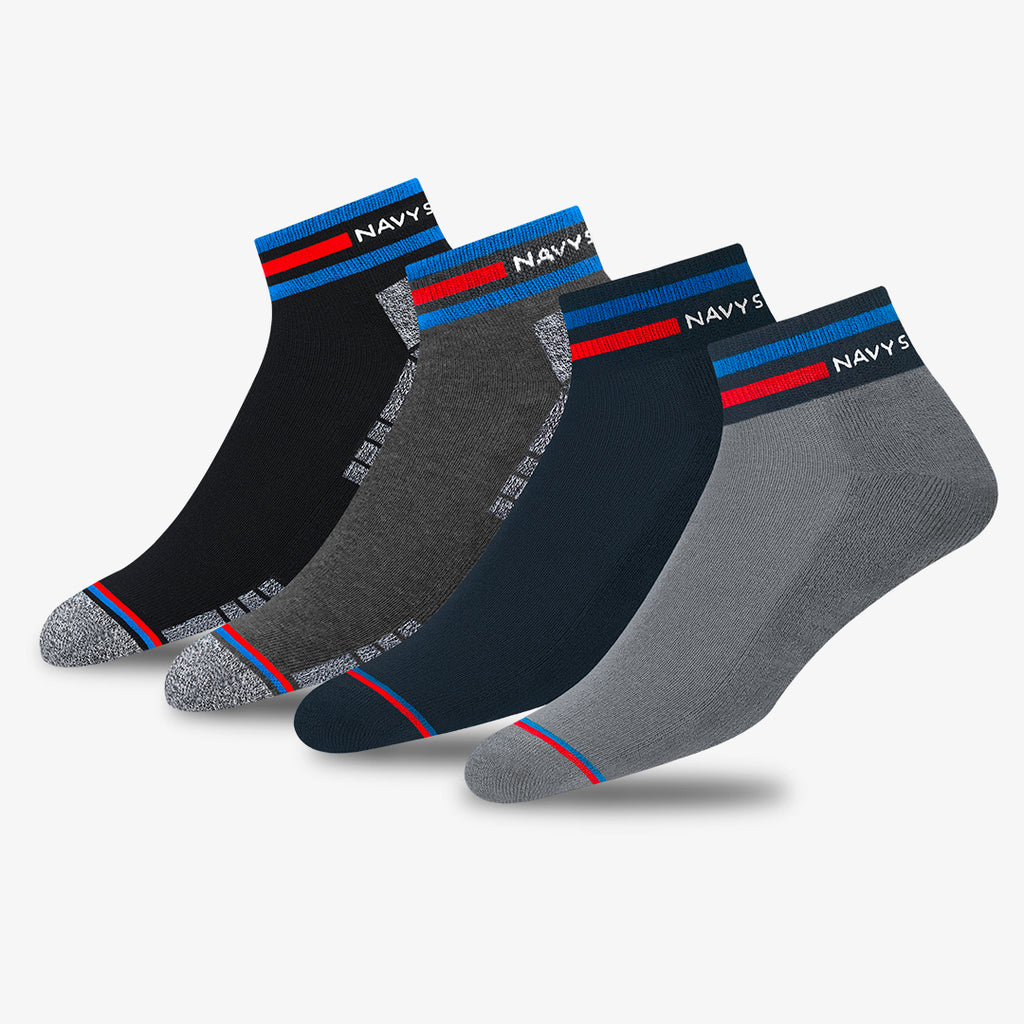 CONTENT : Includes 4 pairs of NAVYSPORT Originals premium combed cotton casual ankle socks with elegant looking signature NAVYSPORT stripes and terry cushioning.
