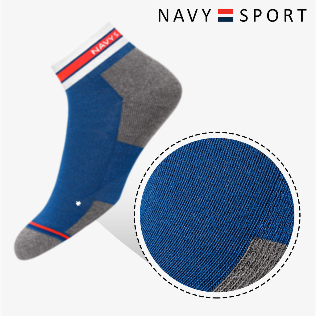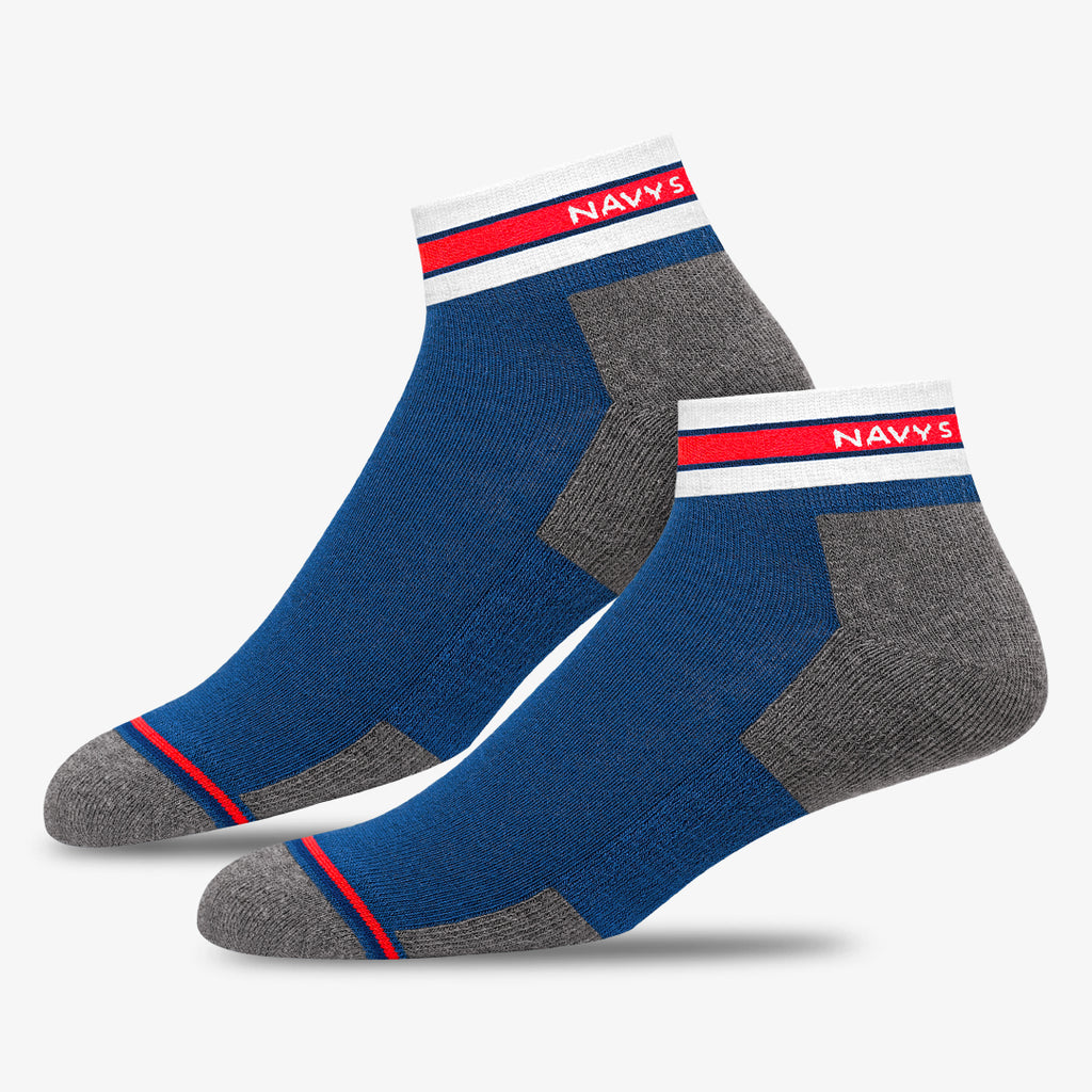 NAVYSPORT Originals premium ankle socks incorporate cutting edge design techniques to deliver maximum comfort to your feet. Crafted from the highest grade combed cotton sourced from the best of class spinning mills in India, each pair of socks has . A durable elastane produced from premium grade rubber is used to ensure a firm grip and withstand everyday wear and tear.